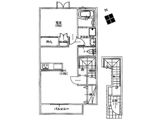 | 詳細間取 | 1LDK (洋6帖×1、LDK14帖) | ||