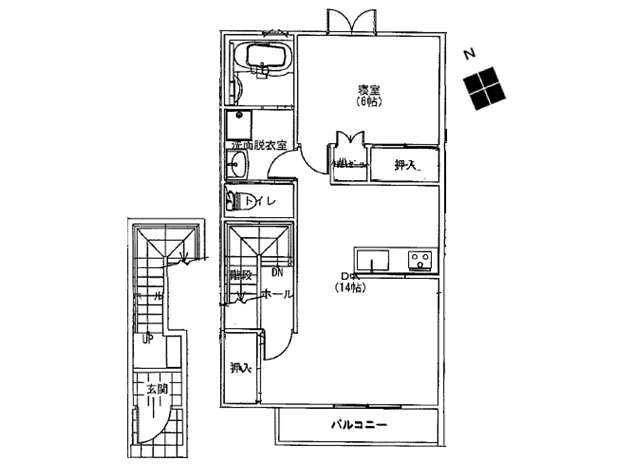 | 詳細間取 | 1LDK (洋6帖×1、LDK14帖) | ||